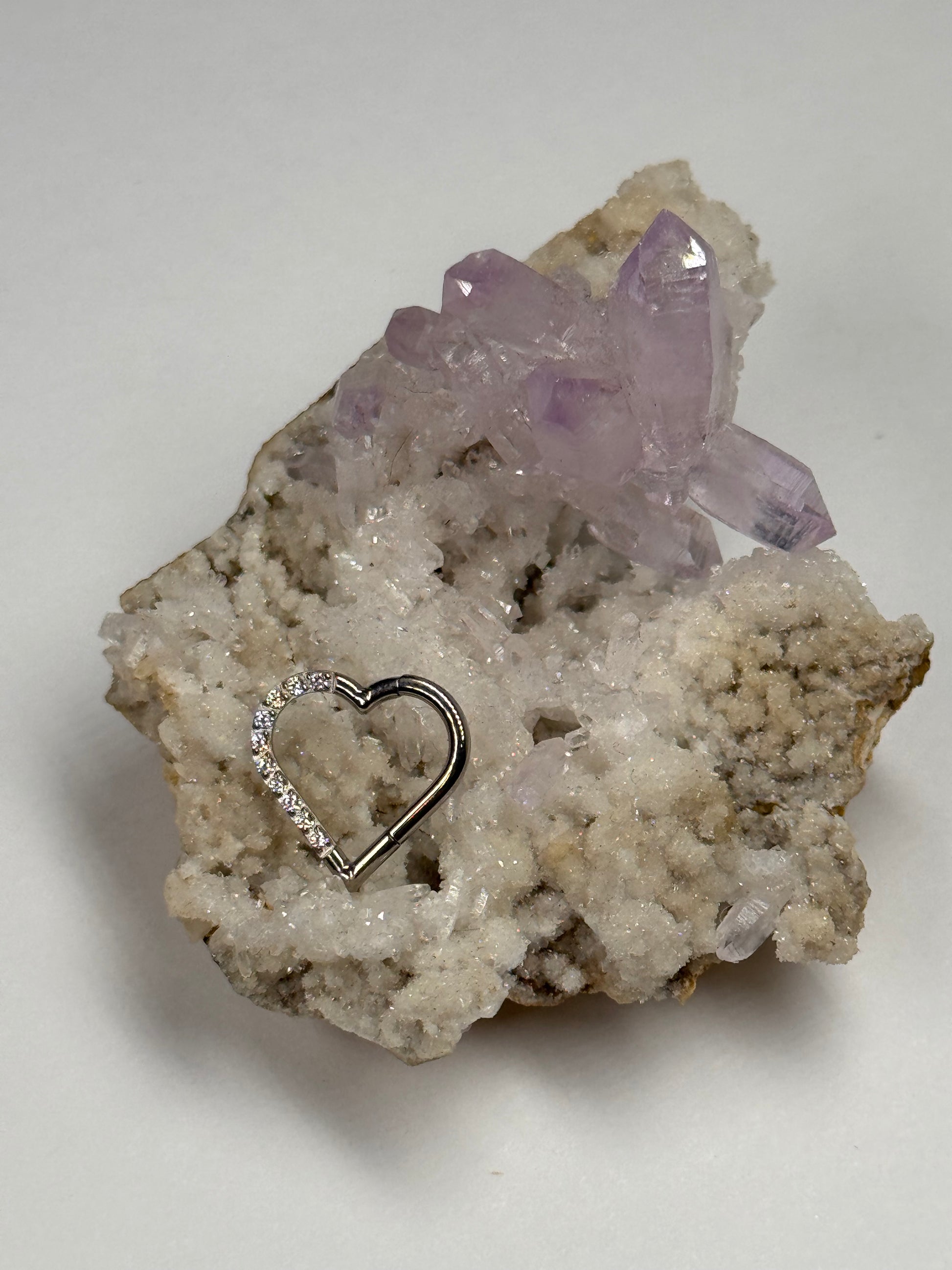 Hermosa Argolla clicker de corazon con Zirconias en Titanio grado implante